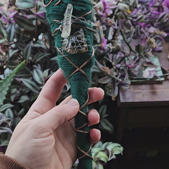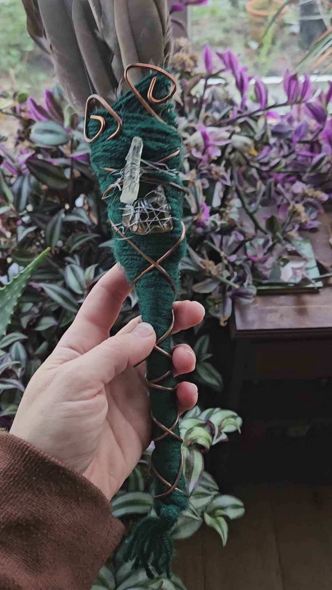The copper twist on the handle and positioning of the crystals allows the user to add extra energy and intentions when spreading sacred smoke around a room or person. The fan can also be used without smoke in a sweeping motion to clear energy from a person or object.